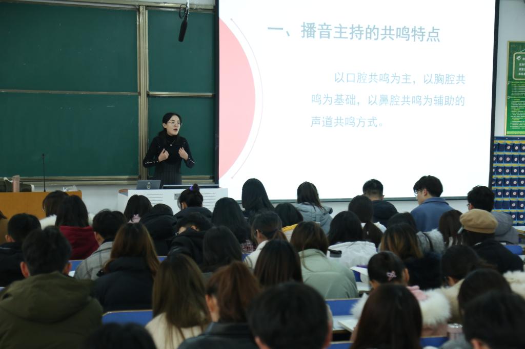 廖悦从共鸣的特点、共鸣的调节方法、共鸣存在的差异三个方面对课程内容进行了讲解。授课过程细致详尽,课堂秩序稳定高效。龚立新在聆听了本次课程后,对廖悦的讲课方式大为赞赏。他指出,师生互动交流密切,员工学习活跃度高,老师讲的好、员工听的会,才是信阳师范学院应鼓励和赞扬的优良作风。