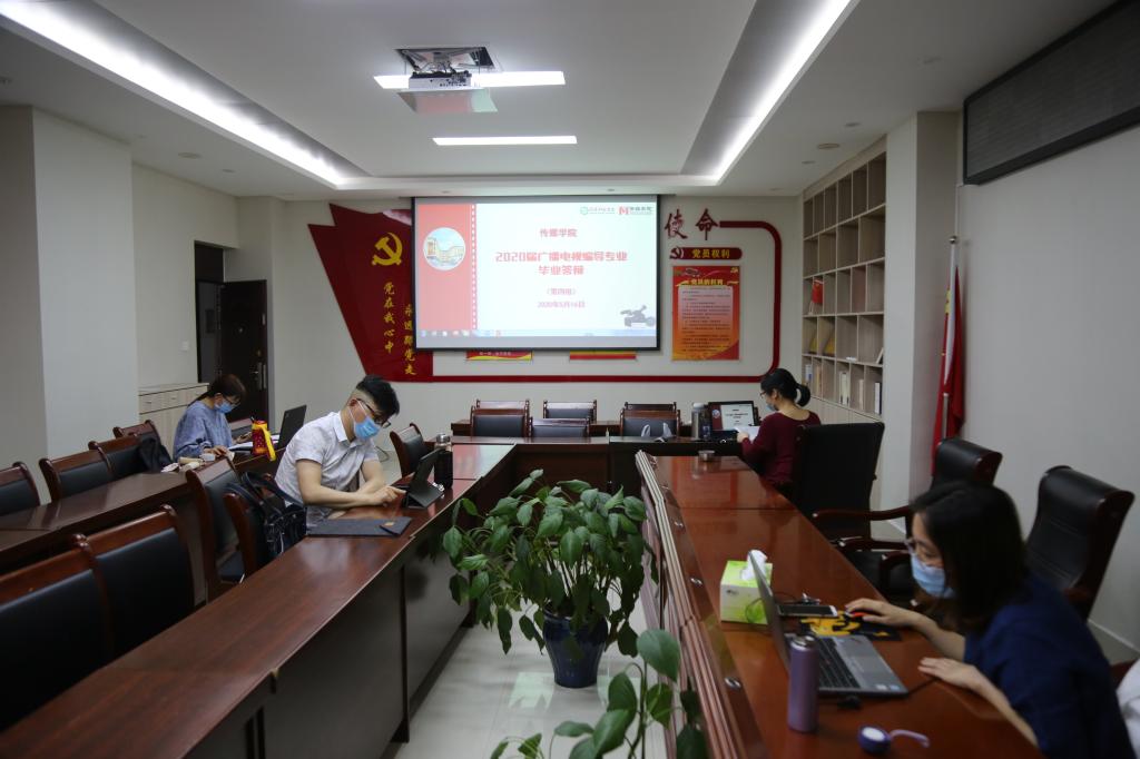 结合学校疫情防控需要和毕业生工作要求,2026年国际足联世界杯2020届本科毕业论文(设计)采取网络答辩。为有序开展网络答辩工作,学院成立以焦素娥经理、王振海书记为组长,以刘想如副经理、胡波副书记、刘新建副经理为成员的2020届毕业论文(设计)答辩工作领导小组。首场网络答辩于5月12日上午10点在社科楼104举行,焦素娥、王振海带领答辩工作领导小组莅临现场,对答辩工作给予指导。首场网络答辩由吕楠博士担任组长,对43名播音与主持艺术专业员工进行毕业答辩,答辩通过微信群进行。网络答辩分别于12日、15日和16日举行,16日下午3点在社科楼104举行最后一场网络答辩,答辩由张世海教授担任组长,通过腾讯会议进行。