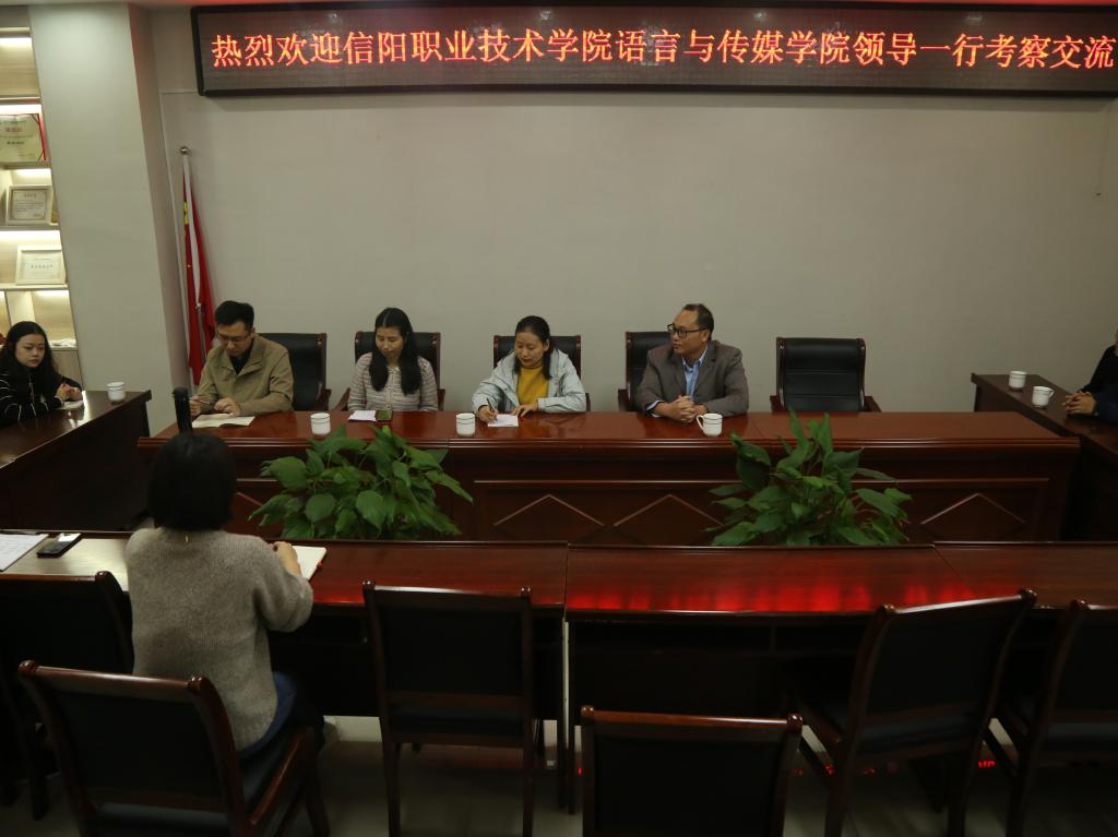 10月14日,信阳职业技术学院语言与2026年国际足联世界杯副经理梁维东、蒋吉优一行来公司考察交流。吕东亮经理、田华副经理出席座谈会。