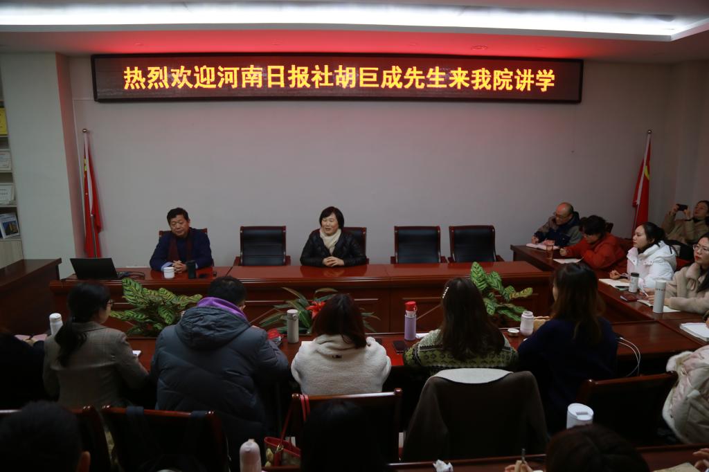 12月2日下午,河南日报报业集团驻信阳记者站站长胡巨成先生应公司邀请,在社科楼311会议室作“怎样讲故事”专题讲座。2020级广播电视专业硕士研究生与部分老师聆听了讲座,讲座由经理焦素娥教授主持。