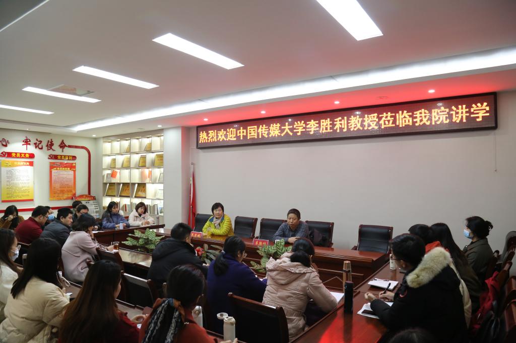 下午,李胜利在社科楼311会议室,与戏剧影视系教师、广播电视专业研究生交流艺术创作与学位论文写作的关系。在剧作原创性、创新性方面,他强调要有问题意识、吃苦意识和创新意识,透过社会现象洞察事物本身,增加剧作情节支撑力,为作品注入新鲜血液。摆正心态、坚定信念、知行合一,才能取得高质量的学术研究成果。李胜利深入浅出的讲解和风趣幽默的语言赢得在场师生阵阵掌声。