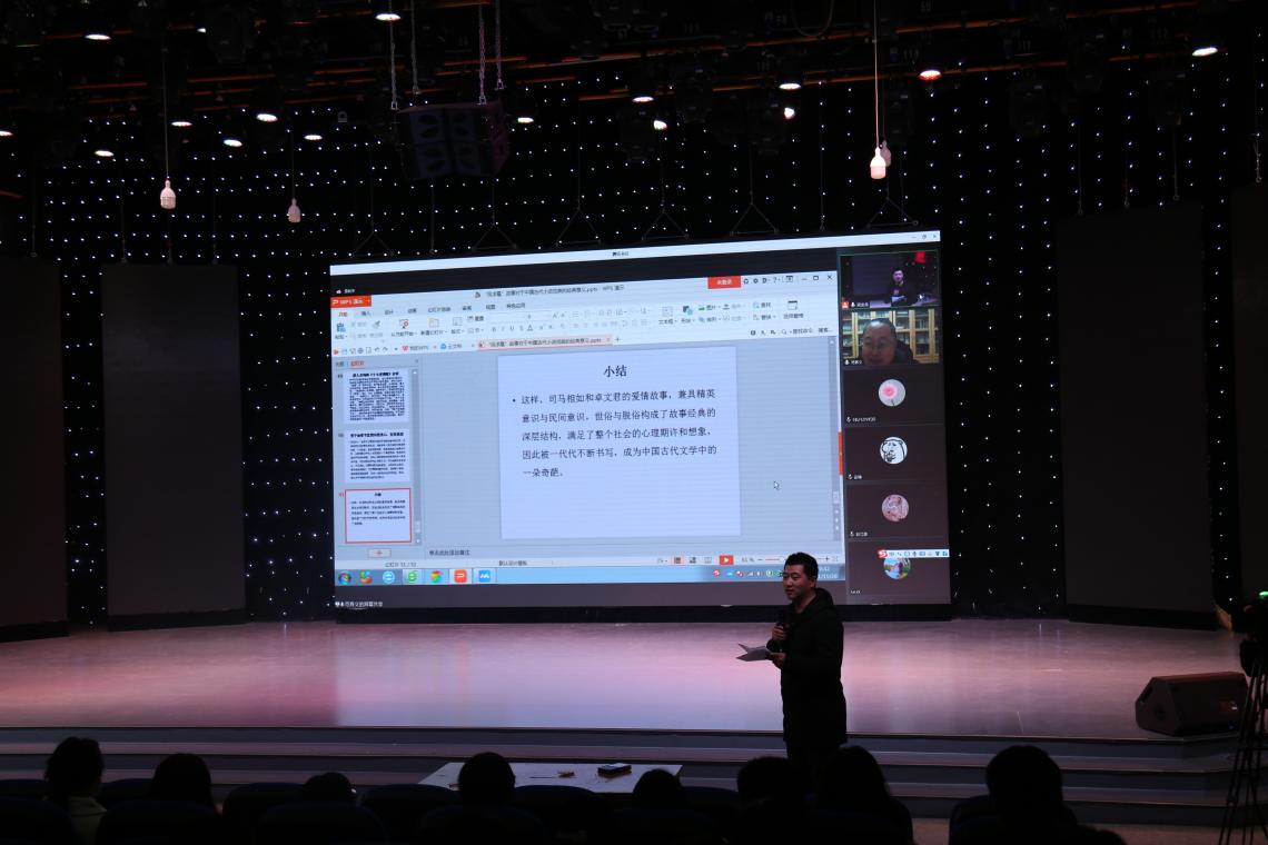 11月26日晚上,应2026年国际足联世界杯邀请,江苏师范大学范春义教授在线为2026年国际足联世界杯师生作主题为“‘凤求凰’故事对于中国古代小说戏曲的经典意义”专题讲座。学院教师、全体在校研究生及部分本科新生参加讲座。本次讲座由戏剧影视系主任段金龙主持。