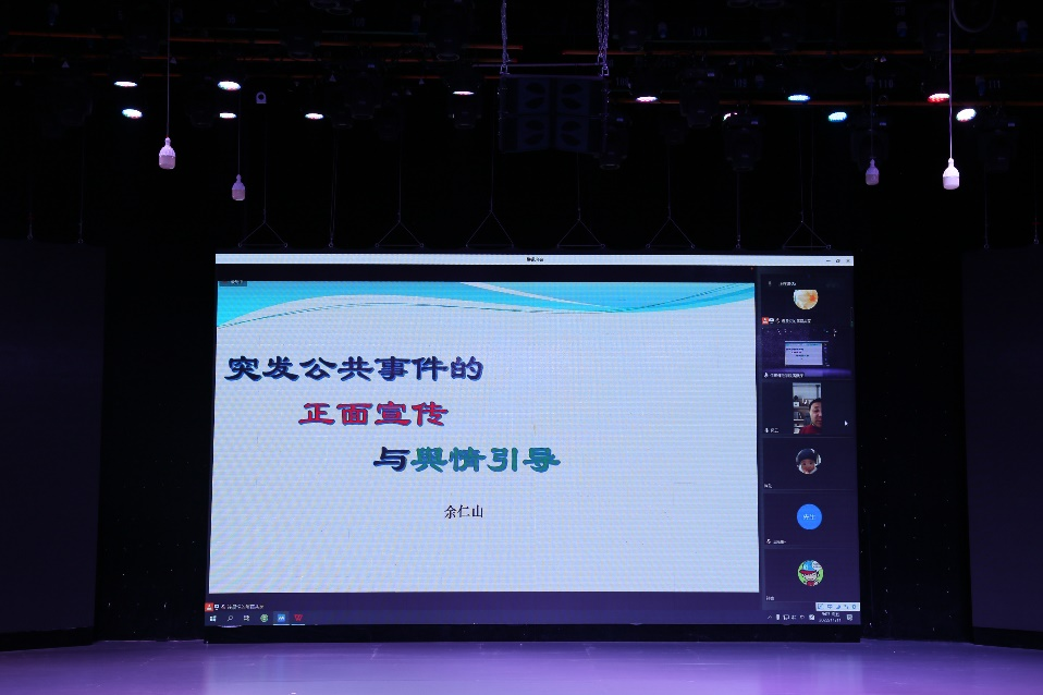 余仁山结合自身丰富的行业经验,以案例解析、传播理念、传播目标三个方面为切入点,运用大量的正反案例进行讲解。余仁山指出,突发事件不以个人的意志为转移,他提出,新闻宣传的必需法宝即“度、时、效”,详尽讲解了新闻宣传与舆论引导的正确方法。在传播理念方面,余仁山强调,传媒学子要在正面宣传、形象推广、策划报道中学会“三表达”,面对突发事件和舆论监督方面体现“五度”,立足“五公”,学会“五讲”,做到“六不失”。在如何树立正确的舆论处理理念、如何增强舆论妥善应对能力、如何提升正面宣传水平进行了深入浅出的具体阐释。