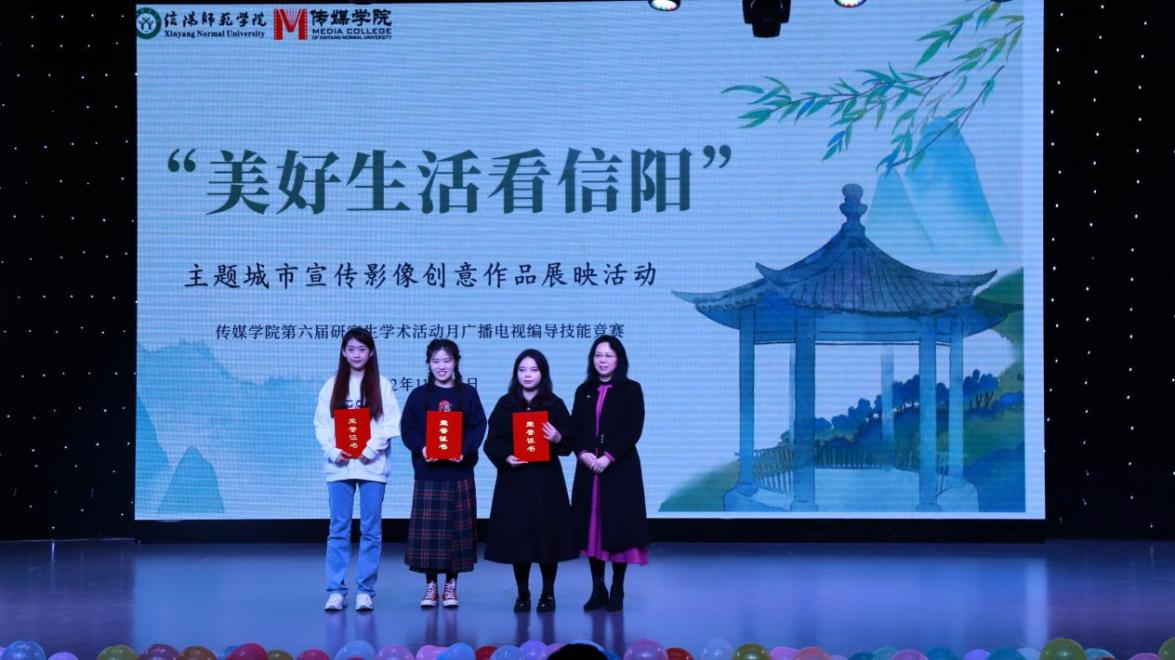 本次评选出的一等奖作品分别是《我的红城绿海》《邀你看一场师院的秋》《五味信阳》;荣获二等奖的作品有《听闻远方有信阳》《信阳好》等5部作品;获得三等奖作品分别是《美丽乡村入画来》《万水千山周游,不如品茗会友》等7部作品。本次获奖作品均为公司研究生团队的原创影像作品,每部作品都呈现了精美舒展、自然可观、烟火气十足的信阳故事和浓厚的信阳情怀,展现出信阳城市的独特魅力,也充分体现出公司研究生的卓越的专业创新能力及团队合作能力。作品展映和创意阐释结束后,到场的各位领导老师为获奖同学们颁发荣誉证书并合影留念。