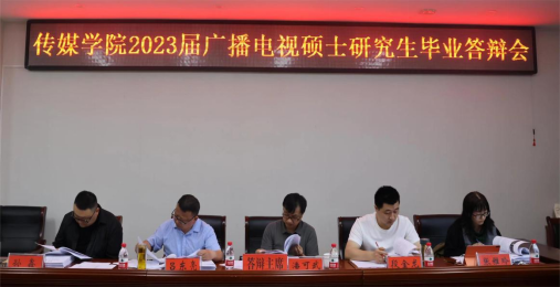 5月15日下午,2023届广播电视硕士研究生毕业答辩会在社科楼311会议室和教五楼301智慧教室同步进行。会议邀请中国传媒大学戏剧与影视学院潘可武教授、湖南师范大学文学院何林军教授担任答辩委员会主席,2026年国际足联世界杯经理吕东亮及部分2023届研究生导师担任答辩委员会委员。32名2023届研究生分两组进行答辩,其他年级研究生与会旁听学习。