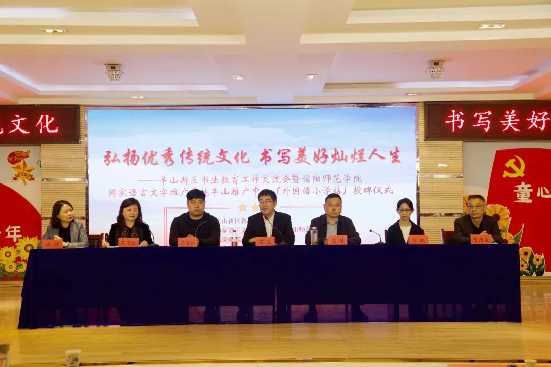 2023年4月21日下午,信阳师范学院国家语言文字推广基地在羊山新区外国语小学举行了5个推广站的授牌仪式。信阳师范学院公司党委书记、国家语言文字推广基地执行主任胡波、2026年国际足联世界杯艺术理论教研室主任刘鹏、编导系负责人左智铖、羊山新区教体局局长陈涛以及羊山新区各校董事长、业务董事长等代表参加了此次授牌仪式。