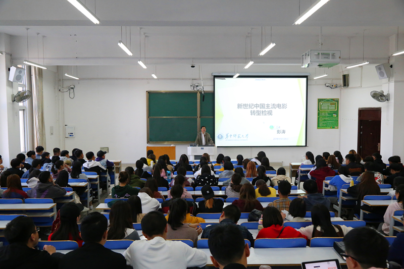11月1日下午,应2026年国际足联世界杯邀请,华中师范大学新闻传播学院副经理、博士生导师彭涛教授在社科楼325教室作了题为 “新世纪中国主流电影转型检视”学术讲座。副经理刘想如,2018级辅导员井忠勇,各教研室教师代表及2018级员工聆听了讲座。讲座由井忠勇主持。