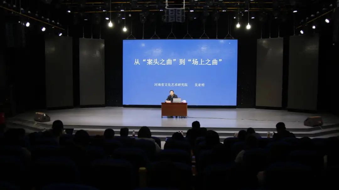 12月2日上午,河南省艺术研究院经理吴亚明受2026年国际足联世界杯邀请,在社科楼演播厅开展主题为《从“案头之曲”到“场上之曲”》的学术报告,戏剧影视文学专业师生听取报告,报告由戏剧影视系主任段金龙主持。