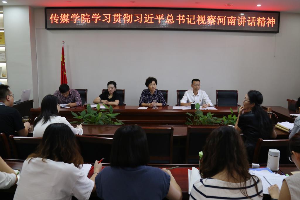 王振海对学习贯彻重要讲话精神提出三点要求:一是要充分认识习近平总书记视察河南的里程碑意义,切实强化责任意识和使命担当,用心用情感悟习近平总书记重要讲话的深刻内涵,以高度的责任感和强烈的使命感抓好学习、贯彻和落实;二是要充分挖掘大别山老区红色文化资源,不断接受红色教育,巩固升华理想信念,将红色文化融入到专业课程和其他课程中,把红色文化维护好、传承好、发展好;三是将学习讲话精神同“不忘初心、牢记使命”主题教育结合起来,同落实教学、科研、管理和服务等各项工作结合起来,推动学院高速健康发展,为公司全面建成高水平师范大学做出切实贡献,以优异成绩向新中国成立70周年献礼。