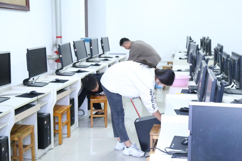 参加活动的成员统一着装,自带工具,以小组为单位对社科楼211、324、325、326、327,逸夫楼309六个教室进行清洁活动,美化学习环境。同学们分工明确,认真投入地打扫每一个教室。在清理过程中,同学们对课桌上的字迹和抽屉里的垃圾进行了集中清理,还对教室的卫生死角进行了清洁。扫地、擦桌、清理垃圾等看似细微繁琐的活动,体现了同学们为学校师生服务的热情。同学们用实际行动做出表率,以呼吁老员工们爱护学校公物。