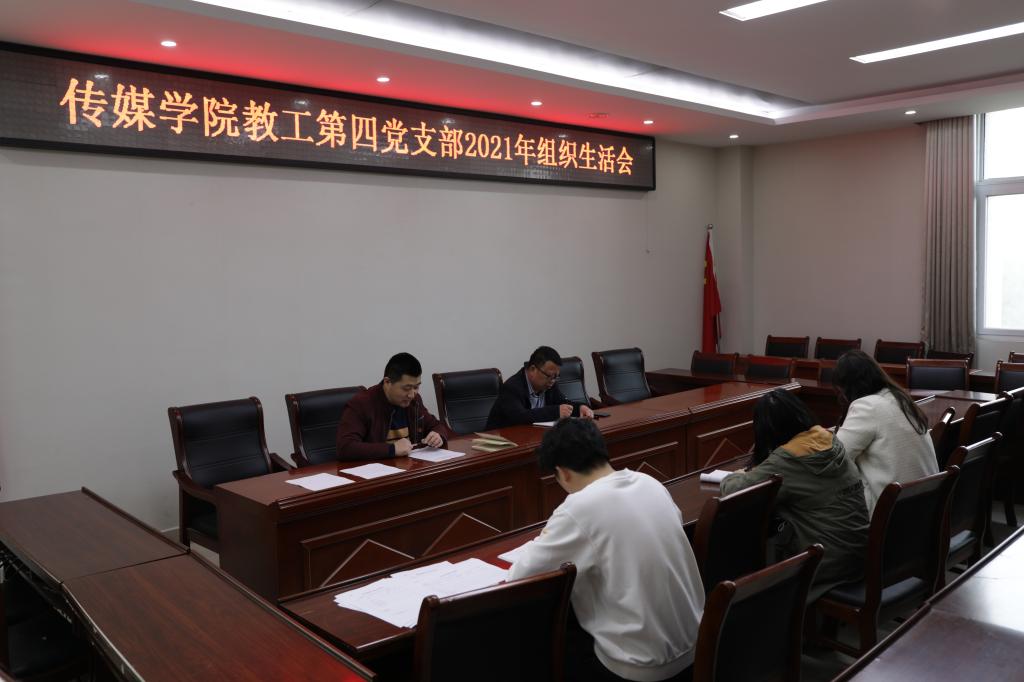 3月15日下午,教工第四党支部在社科楼311会议室召开了2021年组织生活会。会议由支部书记段金龙同志主持,支部全体党员参加,经理吕东亮同志以普通党员身份参加了会议。