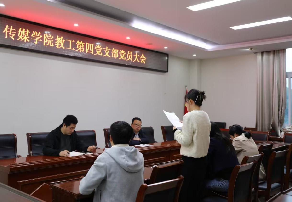 预备党员聂君伊向大会提出了转正申请并向党组织进行汇报。聂君伊同志表示,自己在思想上始终与党组织保持高度一致,积极认真学习党的各项方针、政策,政治理论素养得到显著提升。在工作中,勤勤恳恳,积极参加党组织的各项活动,在活动中锻炼提升了自身的能力。承担大型反腐倡廉题材话剧《甜蜜的敌人》的导演工作,在工作中对新时代廉洁文化建设有了深刻的认识。在教学科研中,对自己严格要求,勇攀高峰,取得了一定的成果。在生活中,和谐友善,积极帮助他人。现预备期满一年,特向党组织提出申请,转为中国共产党正式党员。