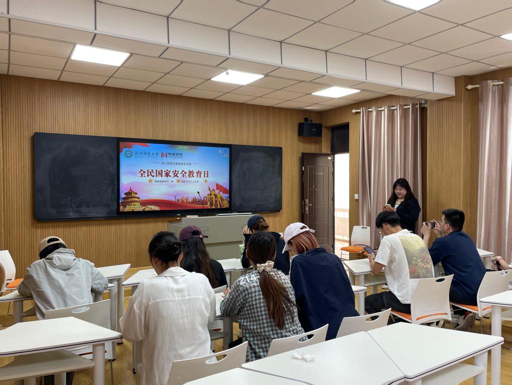 4月16日下午,在教五205室组织师生观看了全民国家安全教育视频,视频通过丰富的案例和直观的影像,生动展现了国家安全的重要性,涵盖政治安全、国土安全、经济安全等多个领域,让师生们深刻认识到国家安全与每个人息息相关。随后,开展了国家安全知识竞赛答题活动,题目围绕总体国家安全观相关知识以及国家安全法律法规相关内容展开,内容丰富、覆盖面广。同学们积极思考、踊跃作答,展现出扎实的知识储备和对国家安全问题的深入理解。在竞赛过程中,大家进一步加深了对国家安全知识的记忆和理解,也意识到维护国家安全是每一位公民的责任和义务。