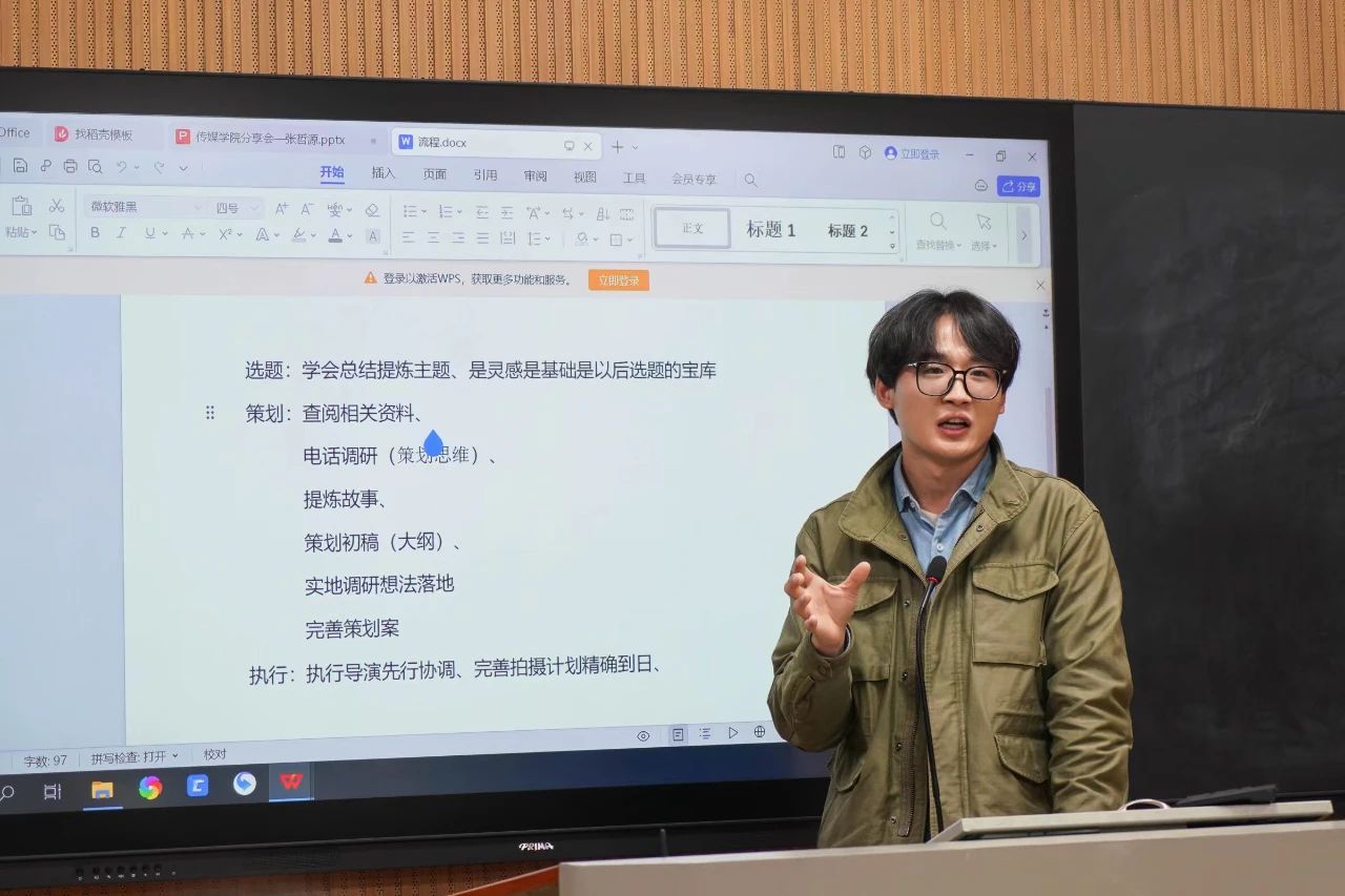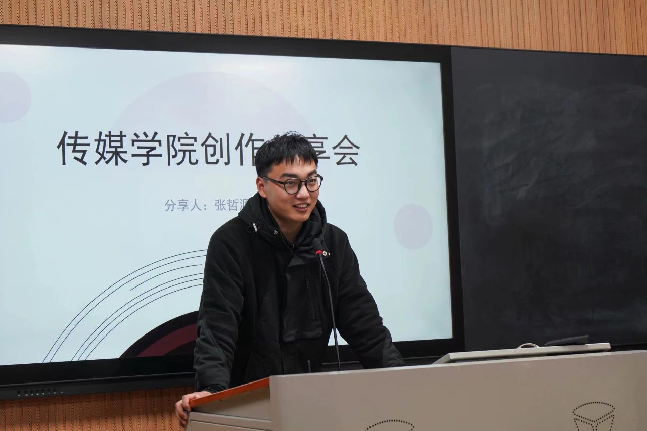 2021级研究生张哲源,2022级研究生马景瑞、董振鹏、纪世新,2023级研究生李文博、韩志倩、胡振峰作为员工代表在活动中分享了创作感悟。他们分别以导演、策划、摄像、制片等视角向研究生们讲述了自身在创作过程中累积的经验和各种小妙招。首先要增强审美能力培养,通过观看大量优秀影片、欣赏音乐增强自己的审美能力,将看到的、听到的优秀作品融入到实践创作中去,从而提升创作作品的质量。也要做好前期策划工作,明确团队分工,树立团队意识,保持稳定的情绪,各成员之间要团结协作,相互理解。