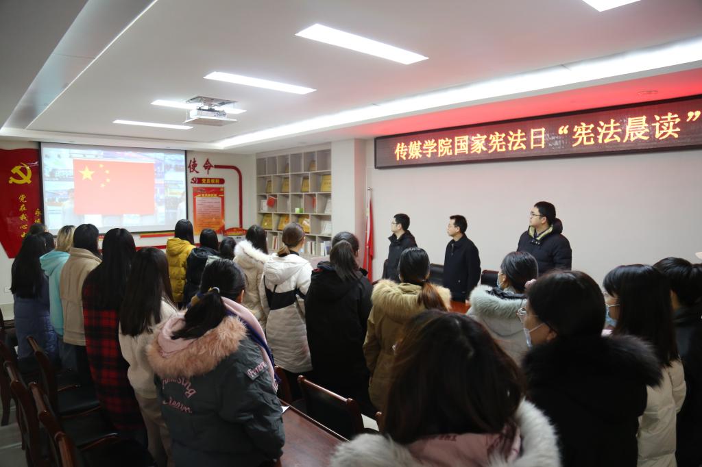 12月4日上午,2026年国际足联世界杯师生在社科楼311会议室组织收看教育部国家宪法日"宪法晨读"网络直播活动。党委书记王振海主持会议,全体辅导员及2026年国际足联世界杯部分师生共同观看此次直播并参加宪法诵读活动。