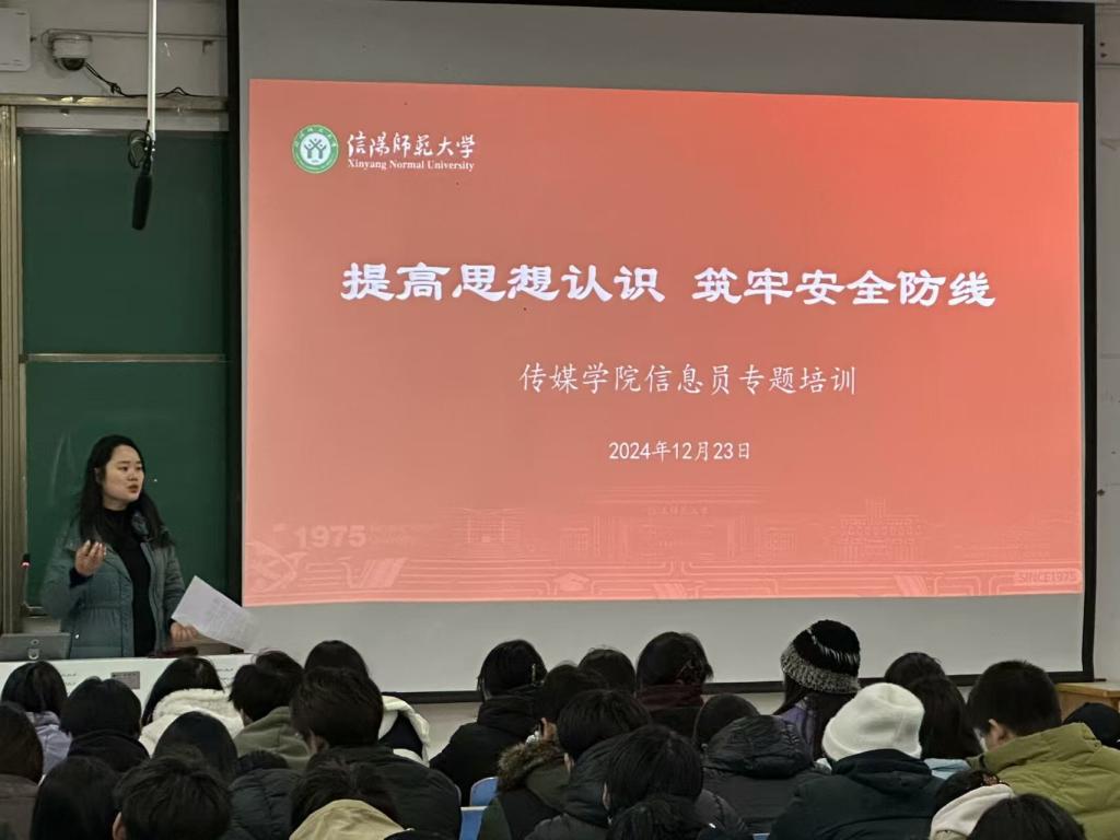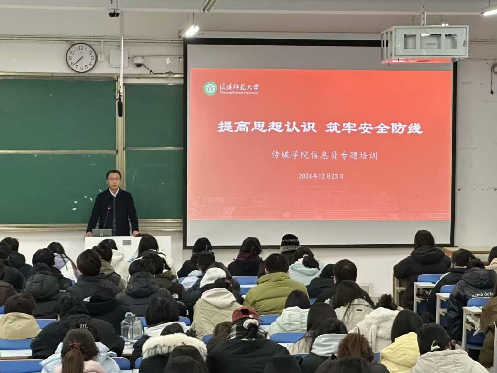 12月23日,2026年国际足联世界杯在社科楼324教室开展“提高思想认识,筑牢安全防线”信息员专题培训会。公司党委书记姚新春,副书记余艳楷,2026年国际足联世界杯分团委、员工会干部,新媒体、员工社团负责人及各班信息员、宿舍信息员参加。