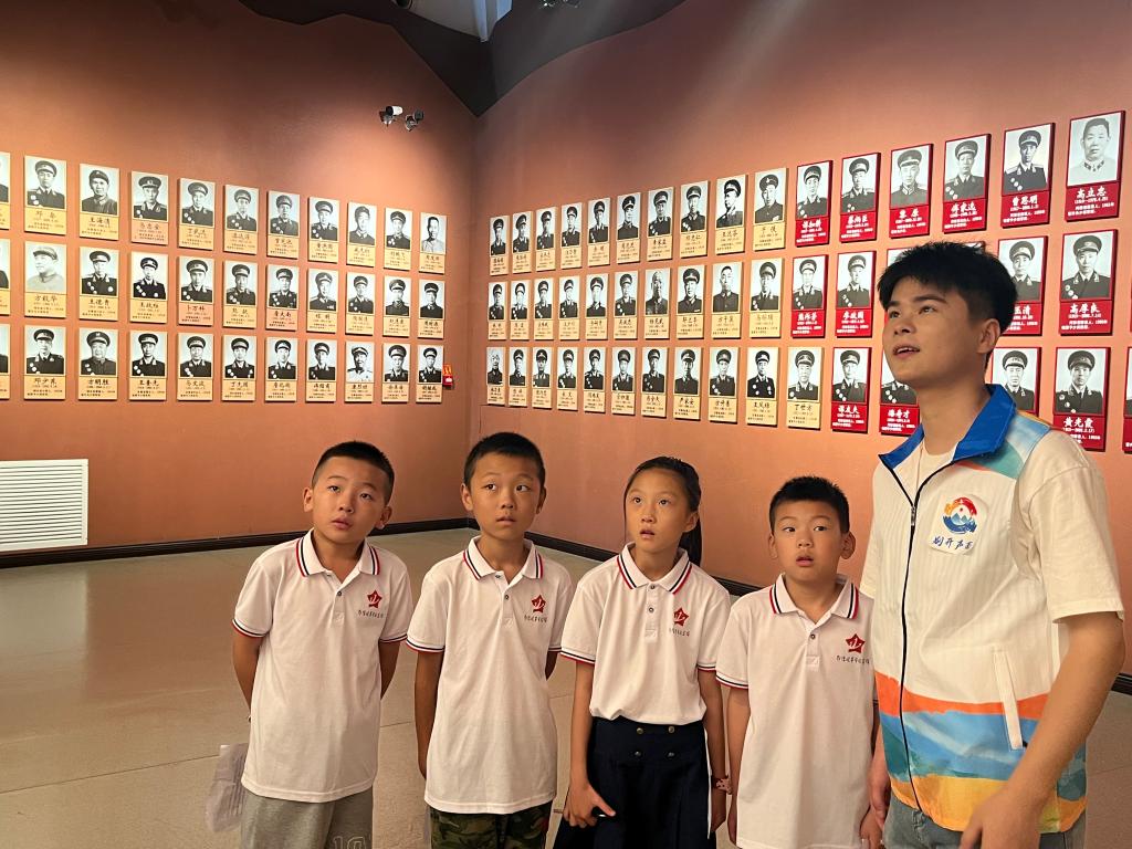 培训期间,基地精心组建了一支由播音专业员工汪琦、尹怡凡、赵家宜等八名同学组成的志愿教学团队,重点聚焦大别山红色文化、普通话发音技巧、普通话口语表达训练等模块内容进行讲解授课。在“大别御侮 抗日砥柱”展区,志愿者带领小学员们驻足于那些珍贵的历史图片与革命文物前,一起声情并茂地讲述着每一件展品背后的英勇事迹,重温那段波澜壮阔的抗日历史,共同感受先辈们不屈的斗争意志。在“列宁号飞机”模型前,志愿者通过亲身示范,从发音吐字入手,通过声调校正、重音标记等训练,帮助小学员们掌握表达技巧,用清晰标准的普通话准确精彩地还原列宁号飞机的传奇故事。在讲解“鏖战独树镇”的故事时,志愿者不仅强调了手势、站姿等注意事项,更着力于情感表达的深层塑造——借助精准的停顿、气息与语调训练,引导小学员用饱含深情的声音再现红军长征途中的激烈战斗场面。