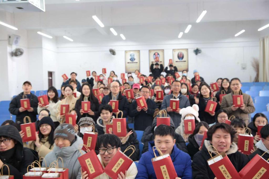 公司领导班子成员、毕业生班主任向考研员工发放“成功上岸”暖心礼包并合影留念。(审核:辛文迪、余艳楷)