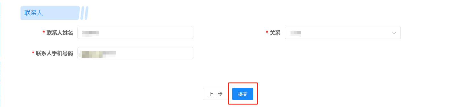 3.填写联系人信息,完成注册。