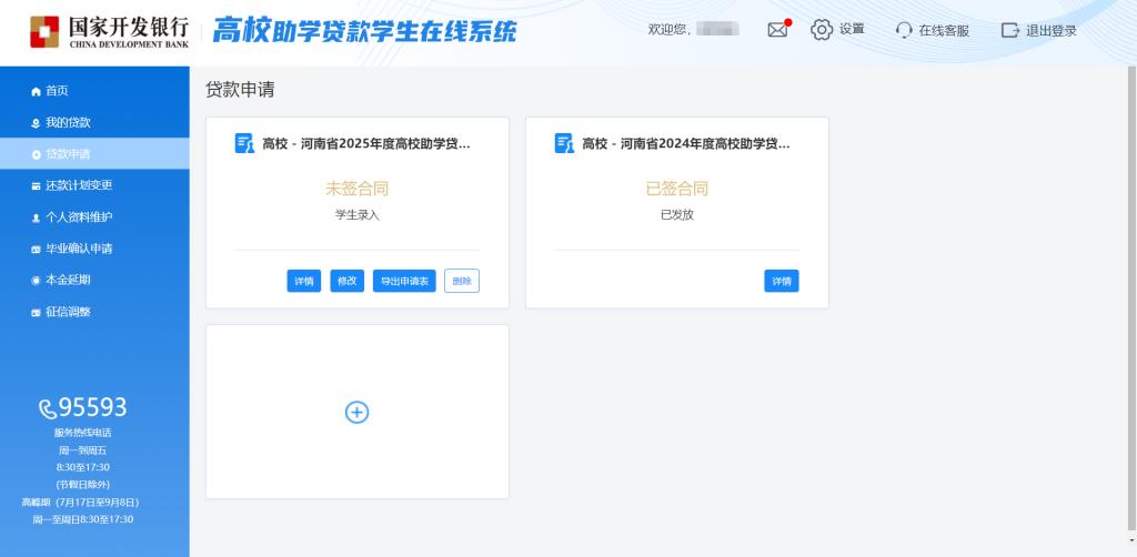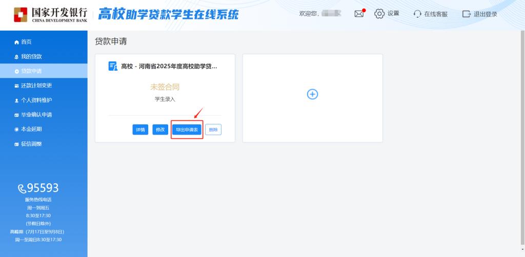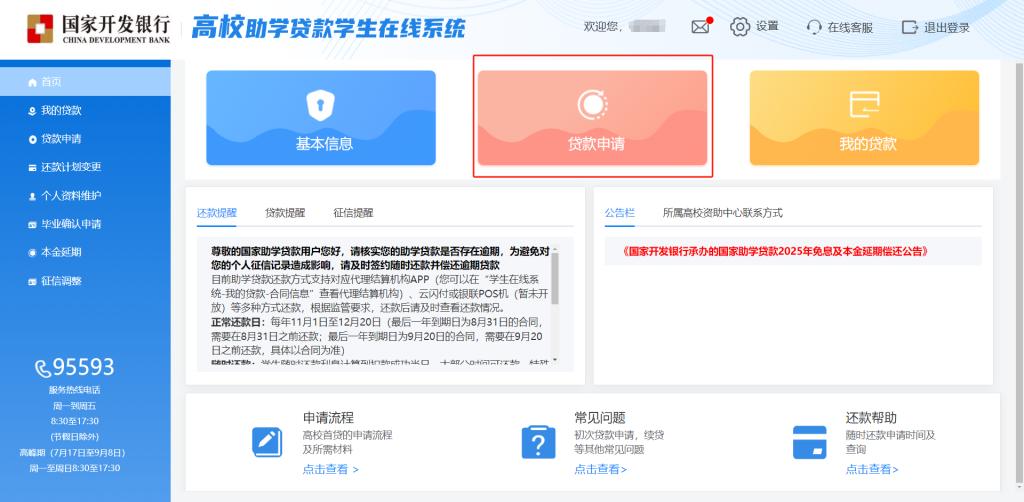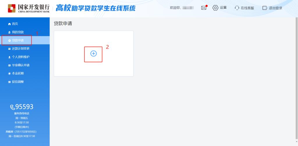 1.通过手机号或身份证号登录国家开发银行员工在线系统,进入界面后选择贷款申请。