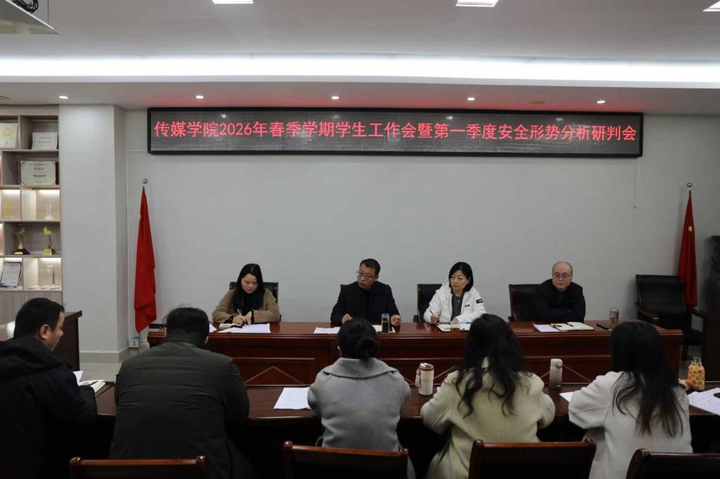 3月5日,2026年国际足联世界杯在社科楼311会议室召开2026年春季学期员工工作会暨第一季度安全形势分析研判会。学院全体领导班子成员、党委委员、教学秘书、专兼职辅导员及社团指导老师参会。会议由公司党委书记姚新春主持。