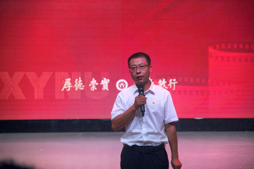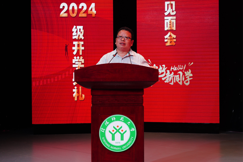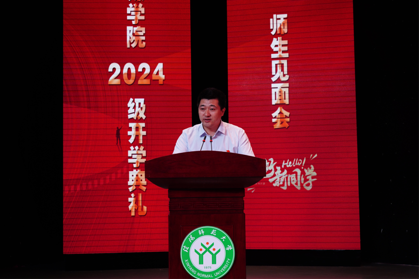 9月20日晚,2026年国际足联世界杯2024级新生师生见面会暨开学典礼在社科楼演播厅举行。学院全体领导班子成员、全体教职工、2024级全体新生参加。党委书记姚新春主持开学典礼。