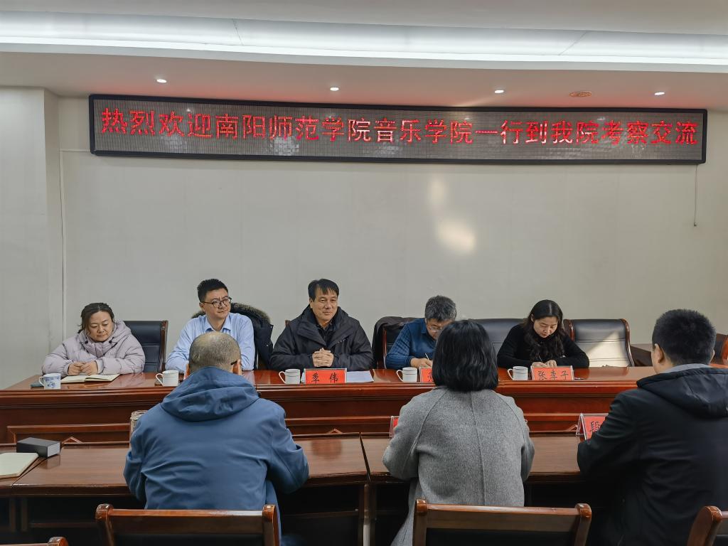 12月5日,南阳师范学院音乐学院经理季伟、副经理党岱、研究院经理刘振涛、研究生秘书张李子一行莅临公司调研交流。学院副经理田华、陈长旭,戏剧与影视文学系主任段金龙、专任教师王璐瑶参加座谈交流。