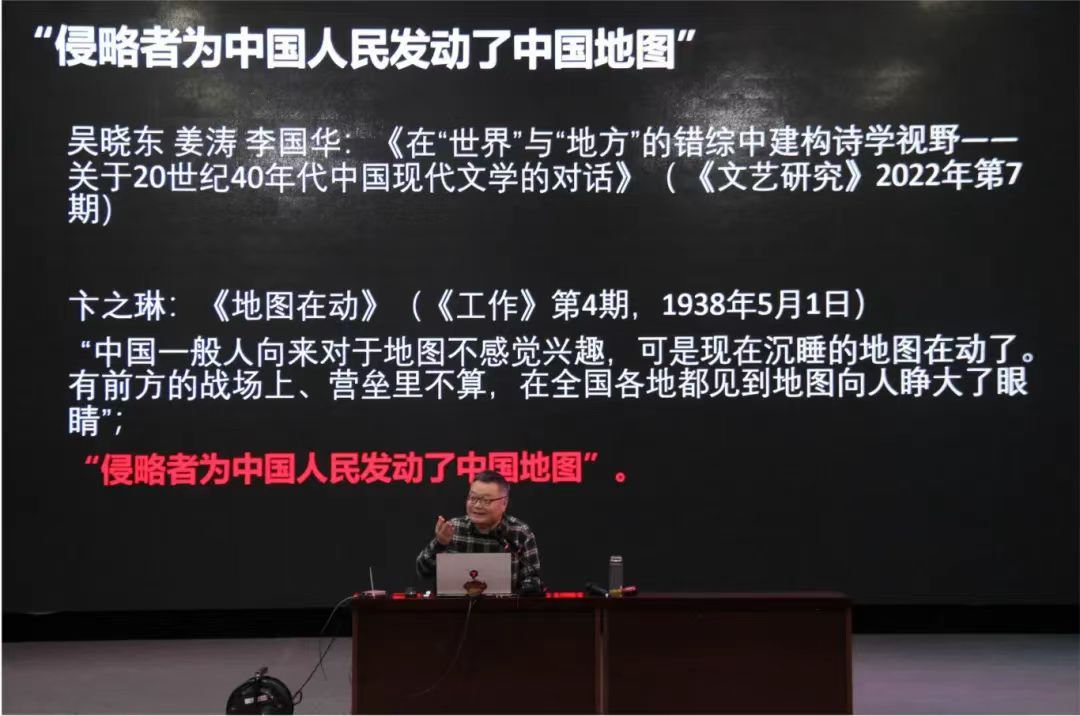 罗岗教授首先回顾了“胡焕庸线”诞生时的历史背景,指出了中国抗日战争与“胡焕庸线”之间的密切关系。罗岗老师认为“黑河一腾冲线”不仅具有人口、气候、经济等方面的意义,同时蕴含了极为丰富的人文和政治意义,“胡焕庸线”是建立在一个“整体的中国领土空间”基础上画出的人口地理分界,它的提出打破了近代以来“本部-边疆”的中国想象,使中国文化版图不再仅限于南北二分,也让东、西的划分具有了理论依据,重构了抗战时期国人对于整体中国的认识。罗岗教授进一步结合毛泽东在《论持久战》中的相关论述,阐发了西北内陆地区对于中国的战略意义,并以此批判了日本满蒙学研究、海外新清史学派有关“中国”的谬说。罗岗教授认为,胡焕庸等地理学家是破除“本部”话语的践行者,他们另辟蹊径,特别注重从“整体的中国领土空间”这样一个地理实体中陈述地理问题,立足于这个地理实体内部的自由区域进行科学分析,这使得过去被误读的国家版图以一个清晰的秋海棠状的中国疆域轮廓呈现出来,是近代整体中国意识的重要依据。“胡焕庸线”带来的意识转变也挑战了中国新文学的边界,迫使现代文学直面中国的广大农村以寻求新的表述主体,由此,一种新的“人民-民族”的视野浮出地表。
