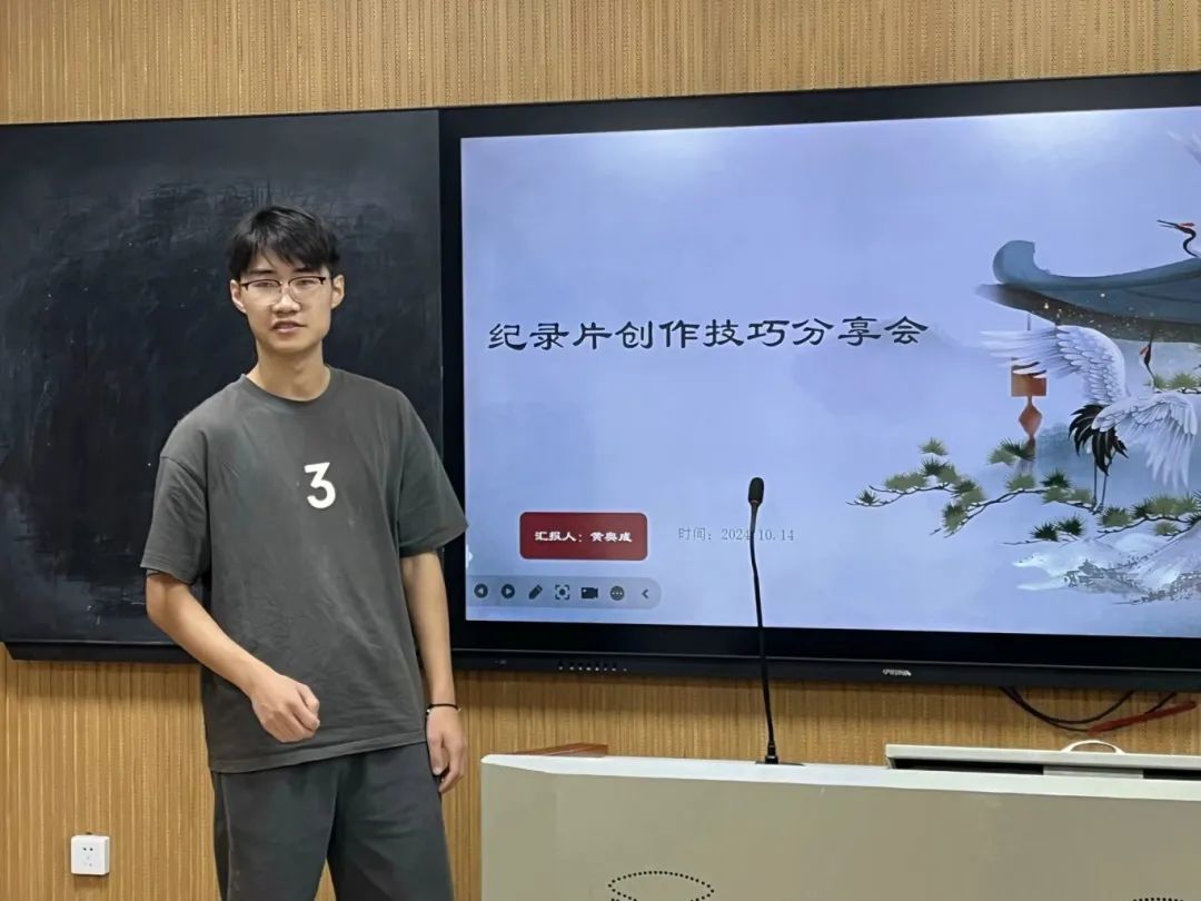2011级员工宋定贵学长以《不要等待完美的时刻 而是要让每个时刻都变的完美》为题,也将自己的专业经验与河南省人文社科重点研究基地中原戏剧影视文化研究中心的员工倾囊相助。会上,宋学长首先和同学分享了一些实用干货,比如拍摄前期需要做好的准备有哪些、稳定器的使用、相机镜头的选择、后期细节如何处理等,这些经验可以帮助员工提前规避很多不必要的拍摄问题,对河南省人文社科重点研究基地中原戏剧影视文化研究中心员工的自身实践帮助极大。其次,宋学长着重强调了团队合作的重要性,团队合作使得个体力量得以汇聚,实现“1+1>2”的效果,作为河南省人文社科重点研究基地中原戏剧影视文化研究中心的员工,更离不开团队合作,这种团队成员之间力量的汇聚不仅能极大地提高员工在具体实践过程中的拍片效率,还可以通过团队成员之间默契的配合,碰撞出更绚烂的花火,甚至会在拍摄中得到一些意外之喜。