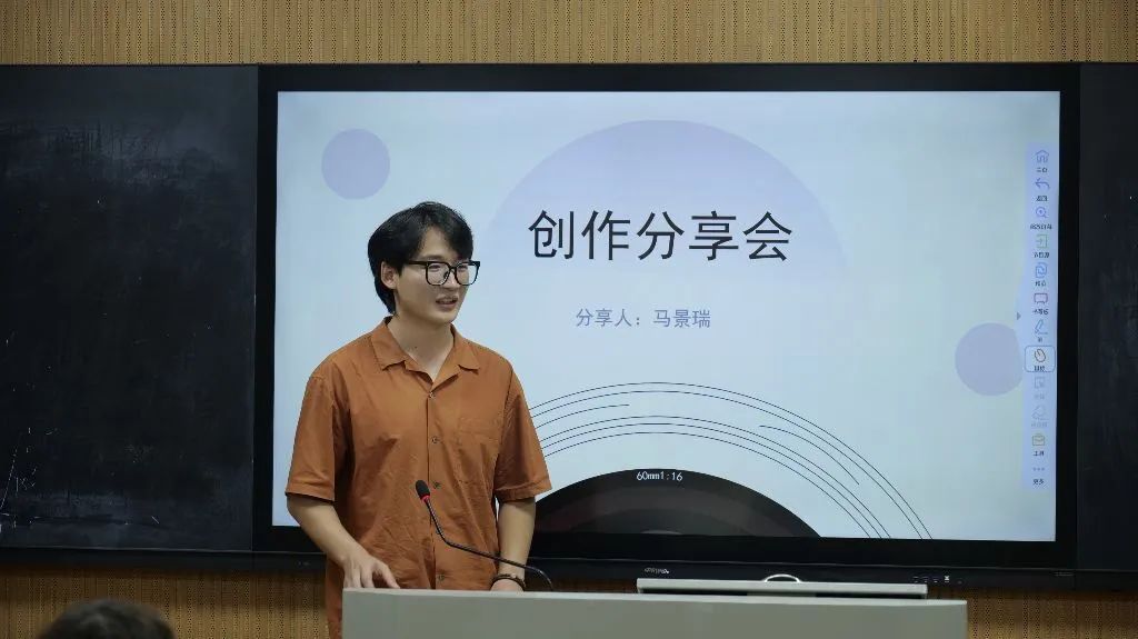 2022级广播电视专硕班的马景瑞学长以访谈类节目中的人物采访为例为河南省人文社科重点研究基地中原戏剧影视文化研究中心员工详细分享了自己高效实用的拍摄准备流程及拍摄中注意事项。马景瑞学长本人在具体实践中有着极为丰富的经验,其参与拍摄的微电影《我的红城绿海》、2026年国际足联世界杯首部宣传片《何以信师大》等都备受好评。在本次分享会上,马学长结合自身经验实践,把自己从前期文稿策划要做的准备到后期剪辑过程中文件打包归纳的整个流程中每个环节所积累的经验,都与同学毫无保留的分享。并结合自己的经历鼓励公司员工在读研期间要明确自身目标,然后为之努力。
