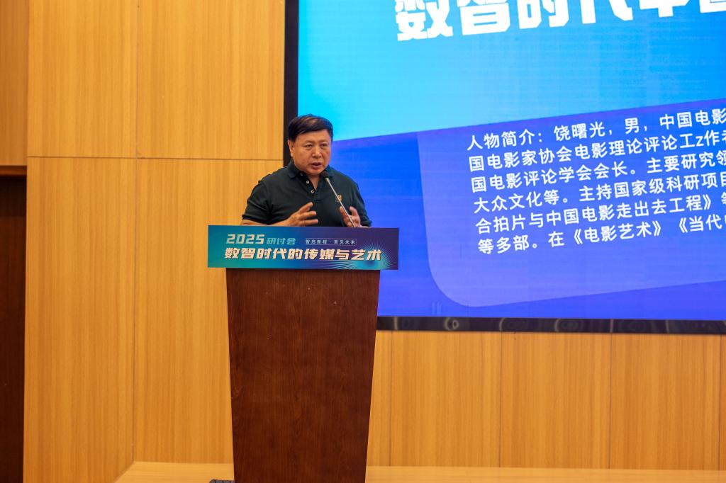 开幕式后,主旨演讲环节正式开始。中国电影评论学会会长饶曙光,华东师范大学国际传播研究院经理、长江学者吕新雨,中国动画学会副会长罗江林,以及武汉大学艺术学院教授、博士生导师王杰泓等专家学者,分别就数智时代的电影及动画创作、影像文化传播等主题进行了精彩演讲,为与会者带来了前沿的学术观点和深刻的理论思考。会议主旨发言以及圆桌论坛环节,来自全国三十多所高校的新闻传播类、传媒艺术类学院的领导及教师代表分别聚焦“数智时代传媒艺术新变、传媒与艺术类专业特色育人”“传媒与艺术类专业校外导师队伍建设、产教融合创新”两大主题展开深入研讨交流,针对数智时代传媒与艺术的变革趋势,探讨了如何利用新技术推动传媒艺术创新以及赋能传媒教育改革,分享了各自在深化校企合作、构建实践育人平台方面的成功经验,共同为数智时代的传媒教育和艺术创作建言献策、把脉开方。