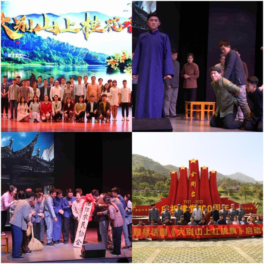 该研究方向以河南省学术技术带头人吕东亮教授牵头,由包括7名青年博士在内的数十名研究骨干组成。在现当代话剧创作及研究方面优势突出,立足于大别山,在红色题材话剧创作方面特色鲜明,先后完成并上演四部原创大别山红色话剧:《大别山上杜鹃红》《大别山上苍松翠》《大别山上桂花香》《大别山上红旗飘》,受到一致好评,并荣获河南省“黄河戏剧节奖”、信阳市“五个一工程奖”等奖项,曾于大别山干部学院进行展演,受到肯定。2022年,改编创作了话剧《甜蜜的敌人》反响良好。该研究方向经过积淀,也积累了一定的研究基础,近年来获批国家社科基金项目1项,出版学术专著2部,在《文学评论》《中国现代文学研究丛刊》《小说评论》《文艺理论与批评》等有影响的学术期刊发表论文30余篇;获省级、厅级科研及展演奖励10余项,该方向支撑的戏剧影视文学本科专业为河南省一流本科专业,有河南省本科一流课程1门,在河南省学科排名第三。同时,以该研究方向为依托,还获批国家语言文字推广基地等平台。